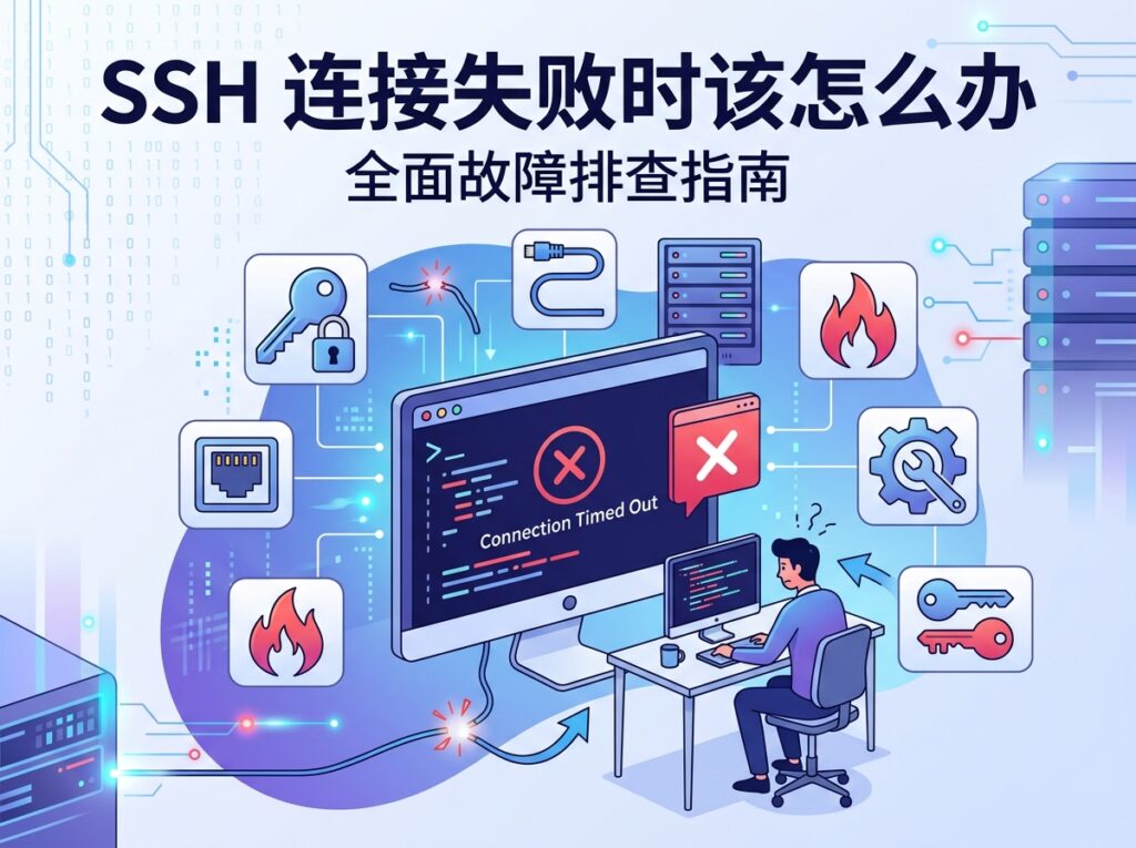 SSH登录失败的原因80%集中在这几个:密码输错、端口填错、安全组没开、密钥不匹配。把这四个先查完,问题基本就解决了。如果都不是,再考虑服务器内部服务的问题。